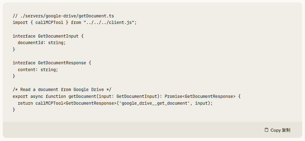 直到看到了 Anthropic 的《Code execution with MCP: Building more efficient agents》,我才发现 MCP 的调用原来也是可以很高效的。
