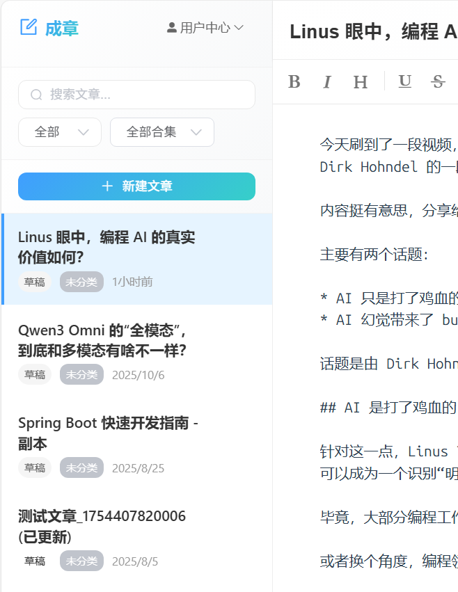 “成章”开源首更:3大体验优化,合集管理补齐!