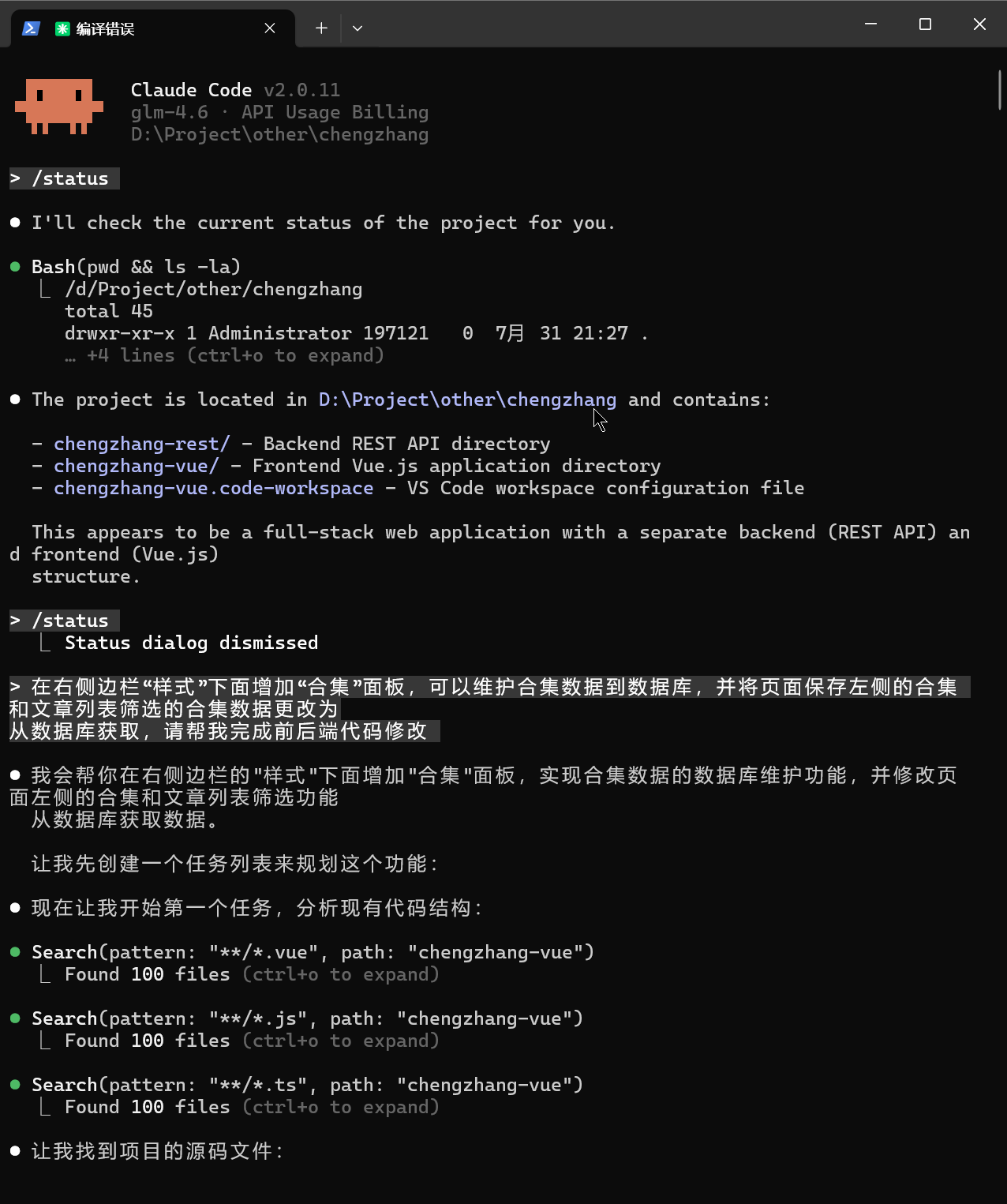 先通过 Trae IDE 实现,未完美实现,就想着再测试一次 Claude Code + GLM-4.6 的效果。