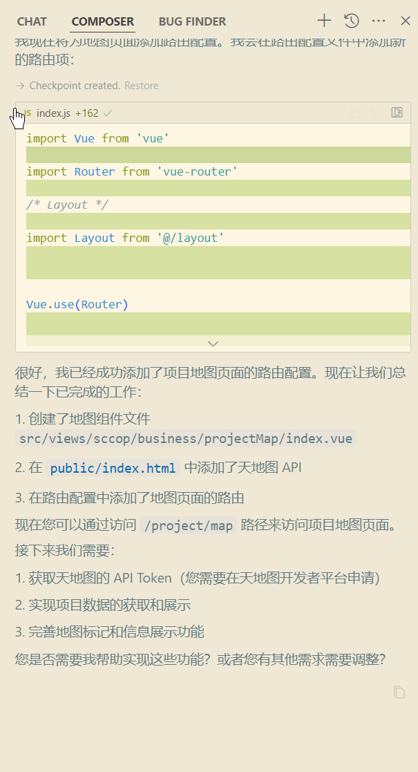 以上就是通过Cursor集成天地图的全过程,说实话,我自己实现的时候,都被惊呆了。全程只有“引入天地图”那一步是关键,其它都是辅助的。
