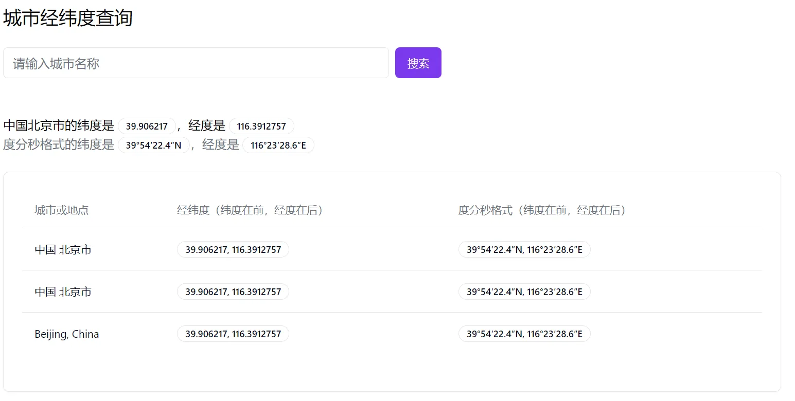 那就直接录入个测试数据试试,搜索下北京的地理坐标,同步维护到测试数据中。