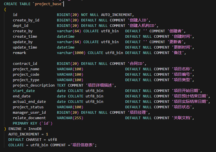 - 按照规范生成了表中的审计字段(create_by、create_time等)。