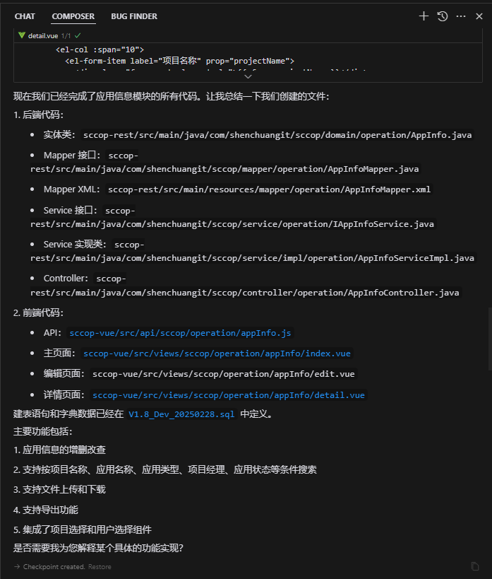 该功能开发时,平台已经实现了基础模块,Cursor 可进行参考实现。