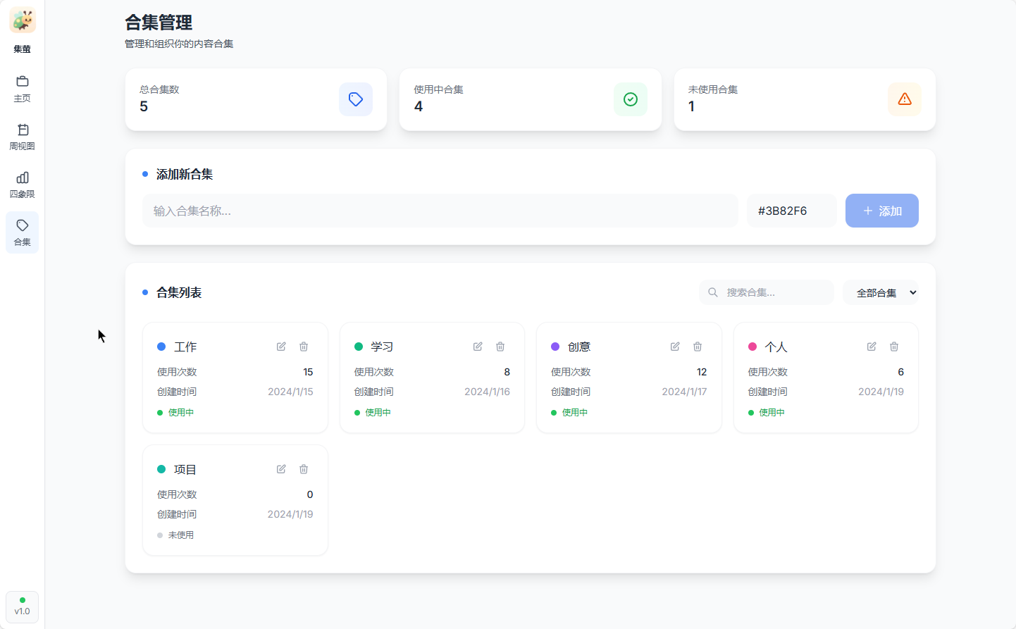 4、合集:为碎片内容设置不同合集,方便区分各种类型事项。