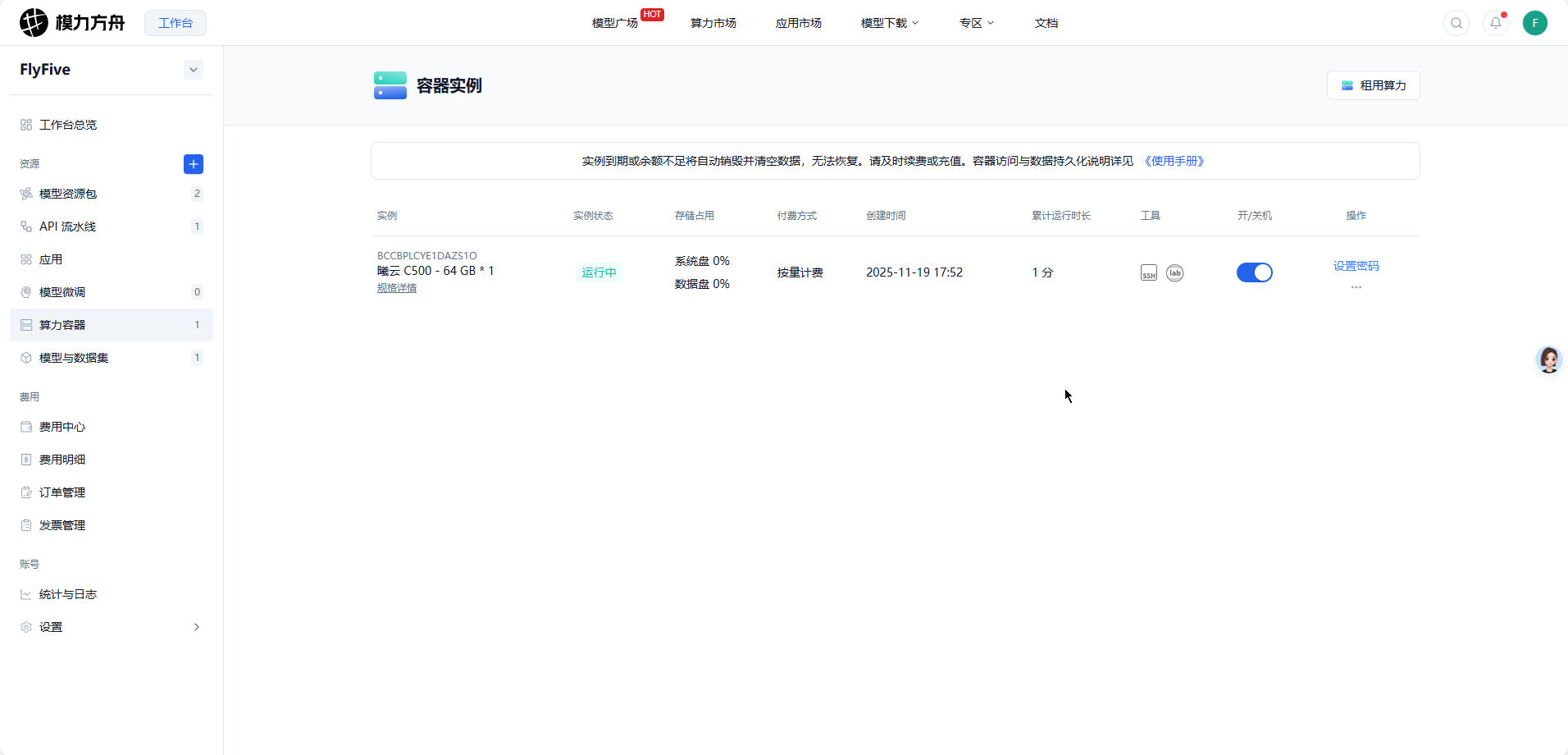 拿到代金券,我们就可以放心的租用算力了。