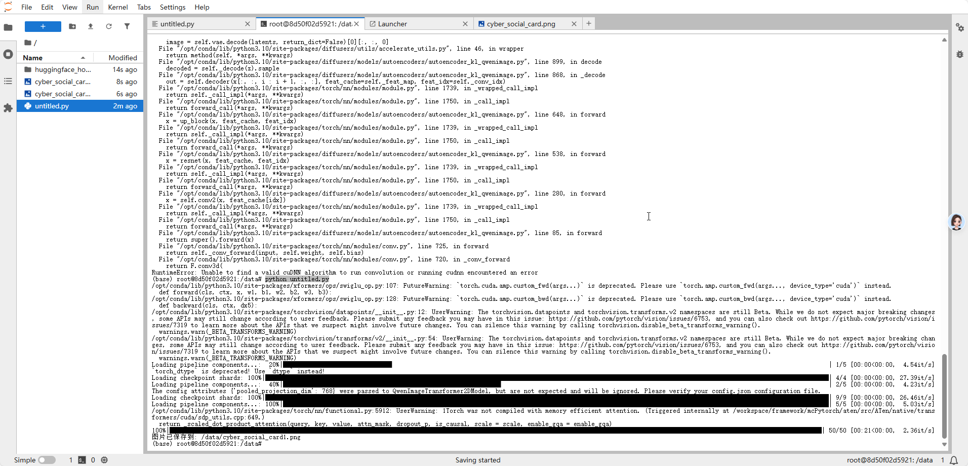 python untitled.py可以看到最后日志显示图片已经生成并保存了。