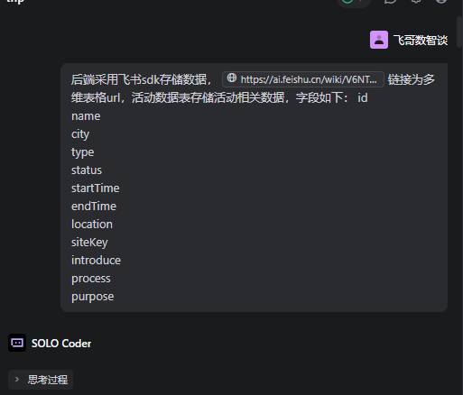 以活动这个模块为例,经过了3次对话完成,分别进行了初始需求的实现、NodeSDK 的接入、Mock 数据的替换。