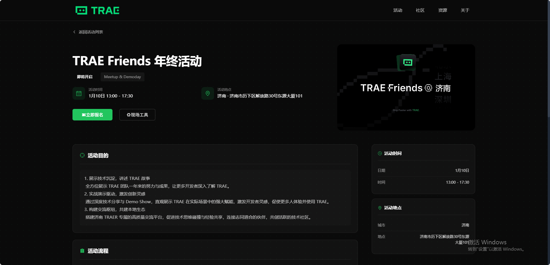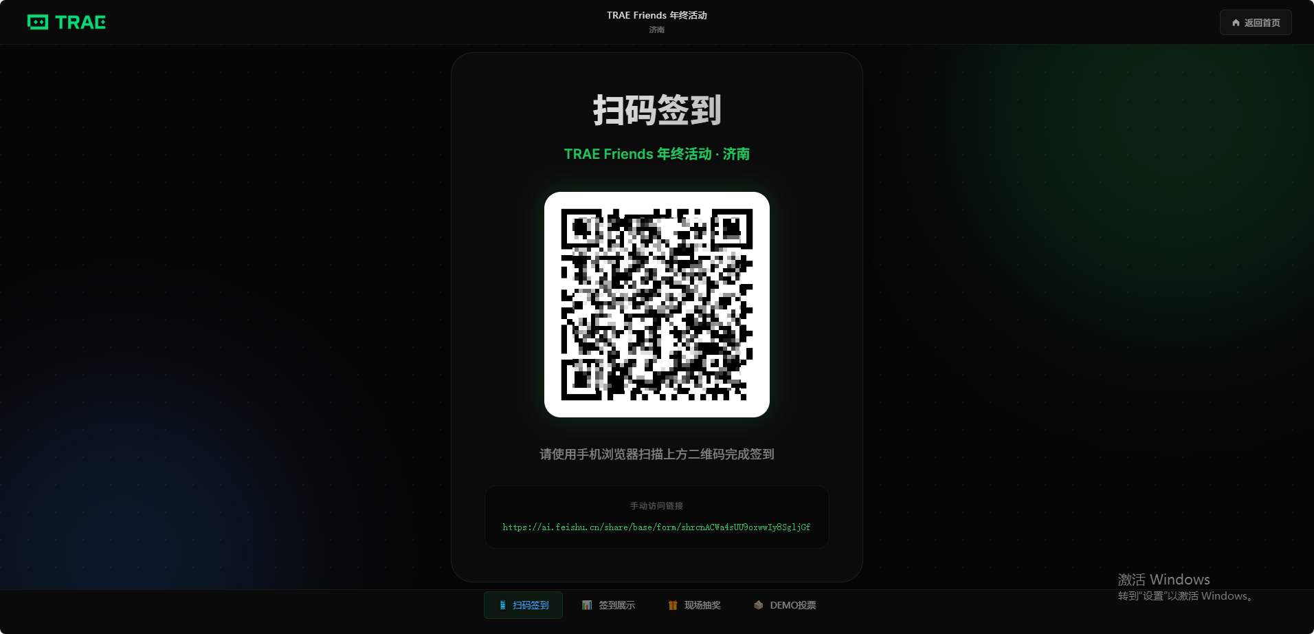 上周六举办了 TRAE Friends@济南 的活动,为了更好地支持现场,我用 TRAE 搭了个活动平台,实现活动信息查看、扫码签到、在线抽奖、Demo展示和投票等功能。