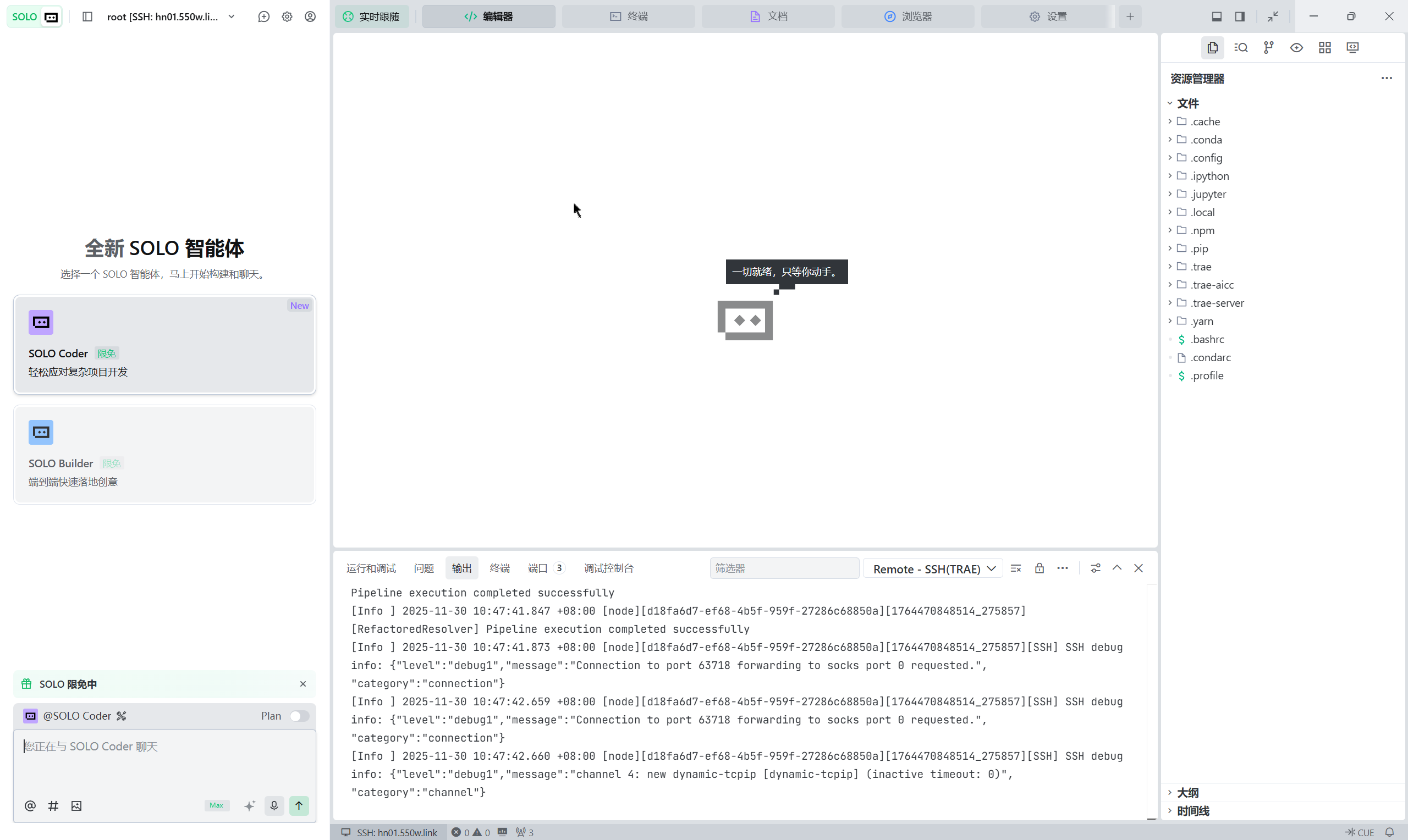 使用 TRAE 远程连接上服务器。