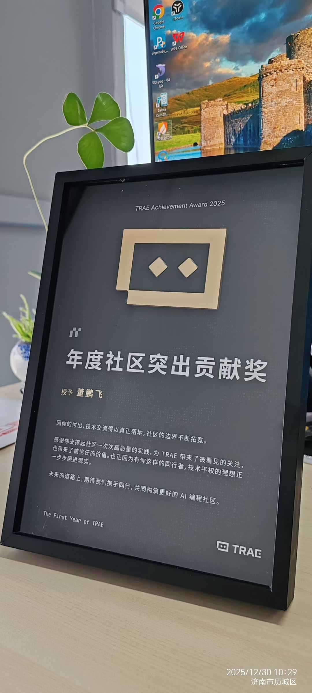今天有一个好消息和大家分享:TRAE 官方的两个证书收到了——“年度社区突出贡献奖”和“年度创作之星”。