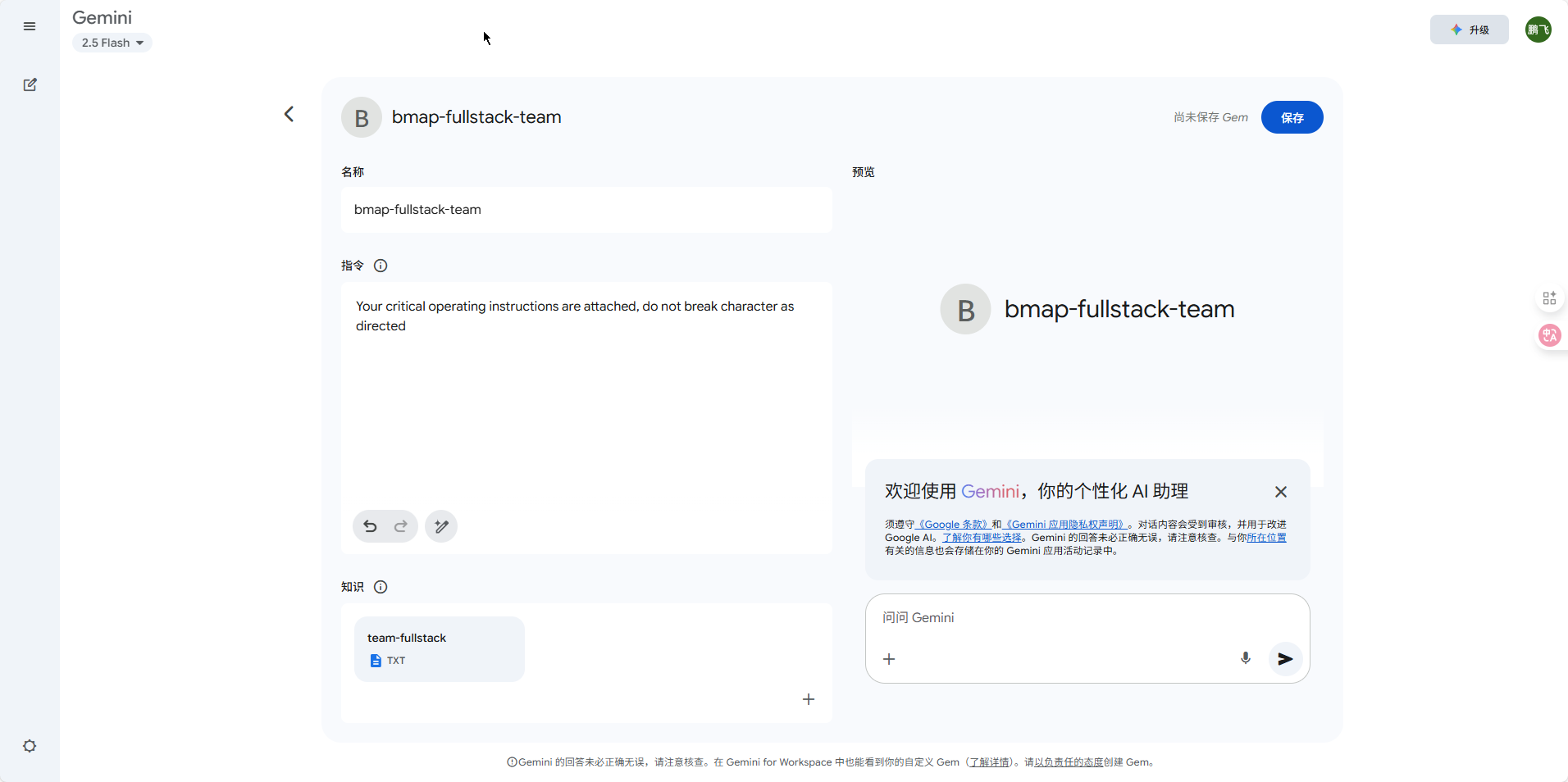 2、创建智能体:使用 Gemini Gem 创建一个智能体,或者使用其他你喜欢的大模型客户端。