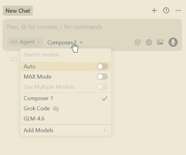 之前的 Cursor 版本中,Claude 使用已经非常受限了。现在,Cursor 2.0 之后的版本,默认模型列表中直接就没有了 Claude 选项。