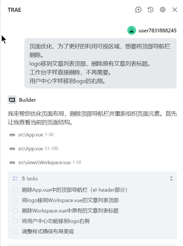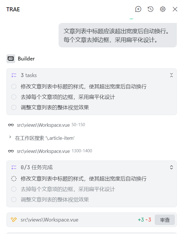 前 3 个优化项都采用了 Trae IDE + Claude-4-Sonnet 实现,一次成功,基本达到预期。