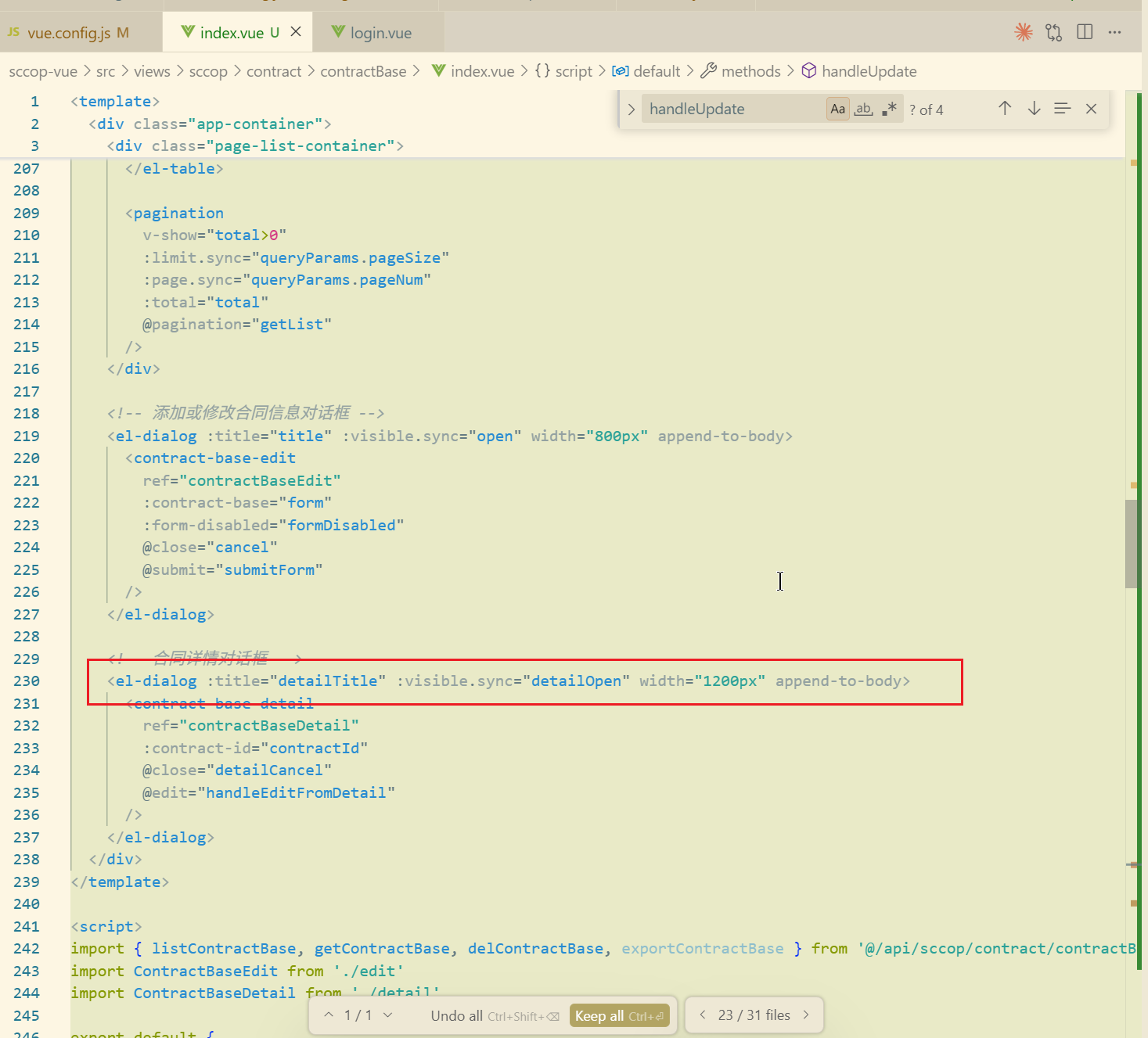 首先是合同列表页面,前面那么多的字段,这里合理的选择部分重要字段显示,并且,查询条件并没有机械全搬列表字段。