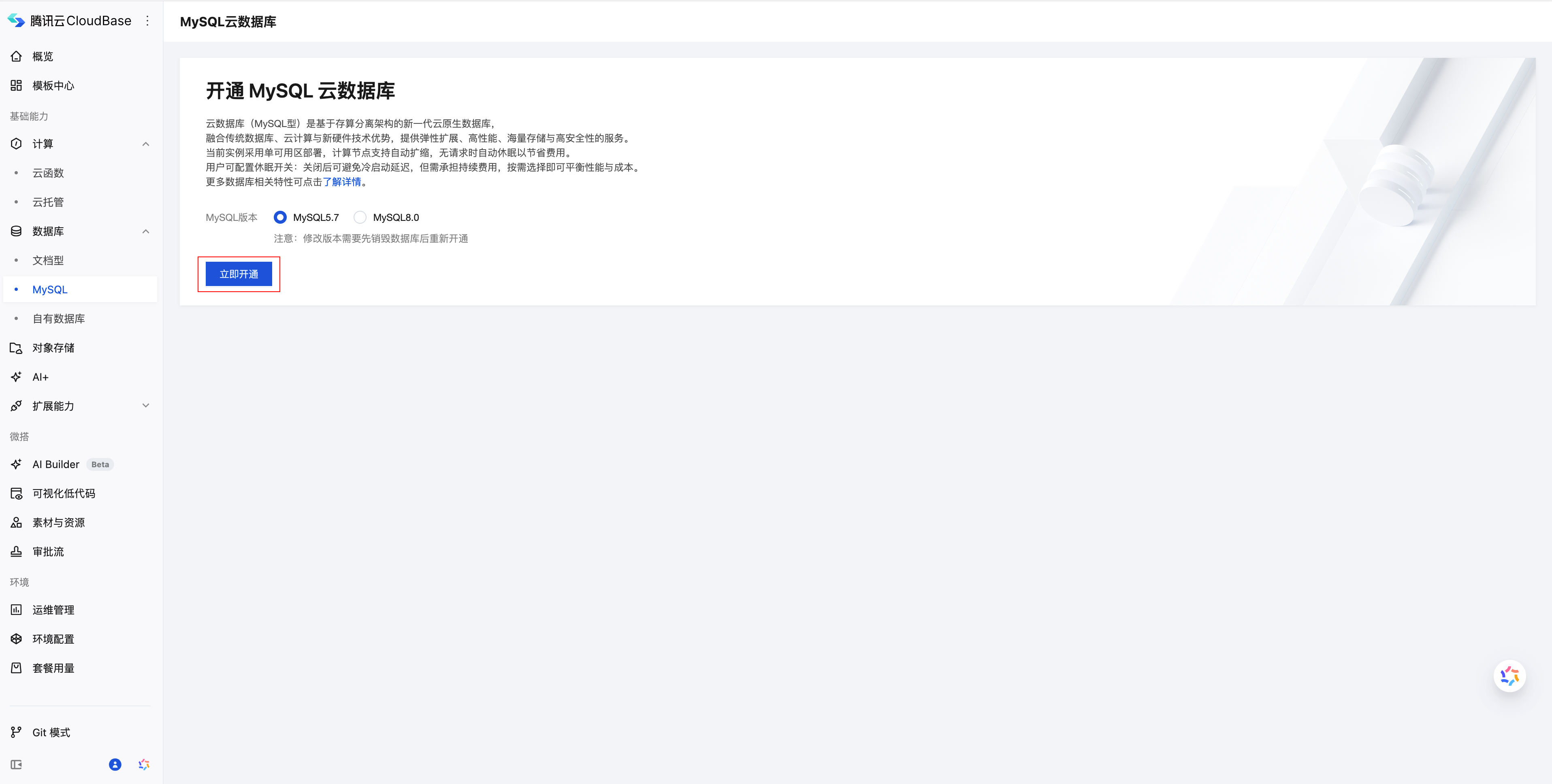 接下来需要实现cloudbase云数据库(MySQL 数据库)存储业务数据。