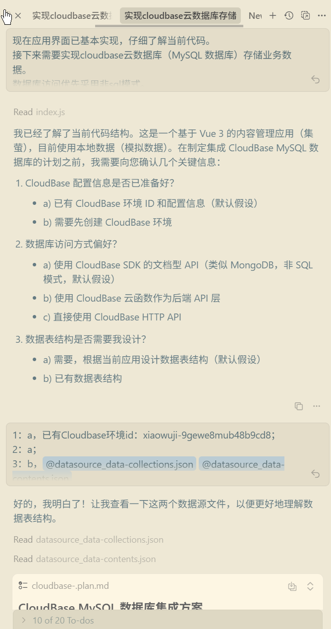 于是简单了解了 CloudBase 相关概念后,改进了提示词。