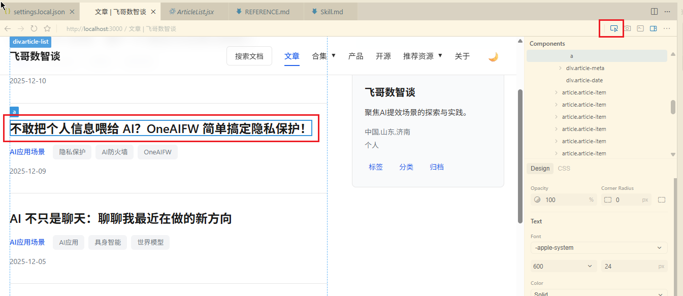 现在有了可视化浏览器,就可以直接点选目标,然后加入对话,进而通过指令进行修改。