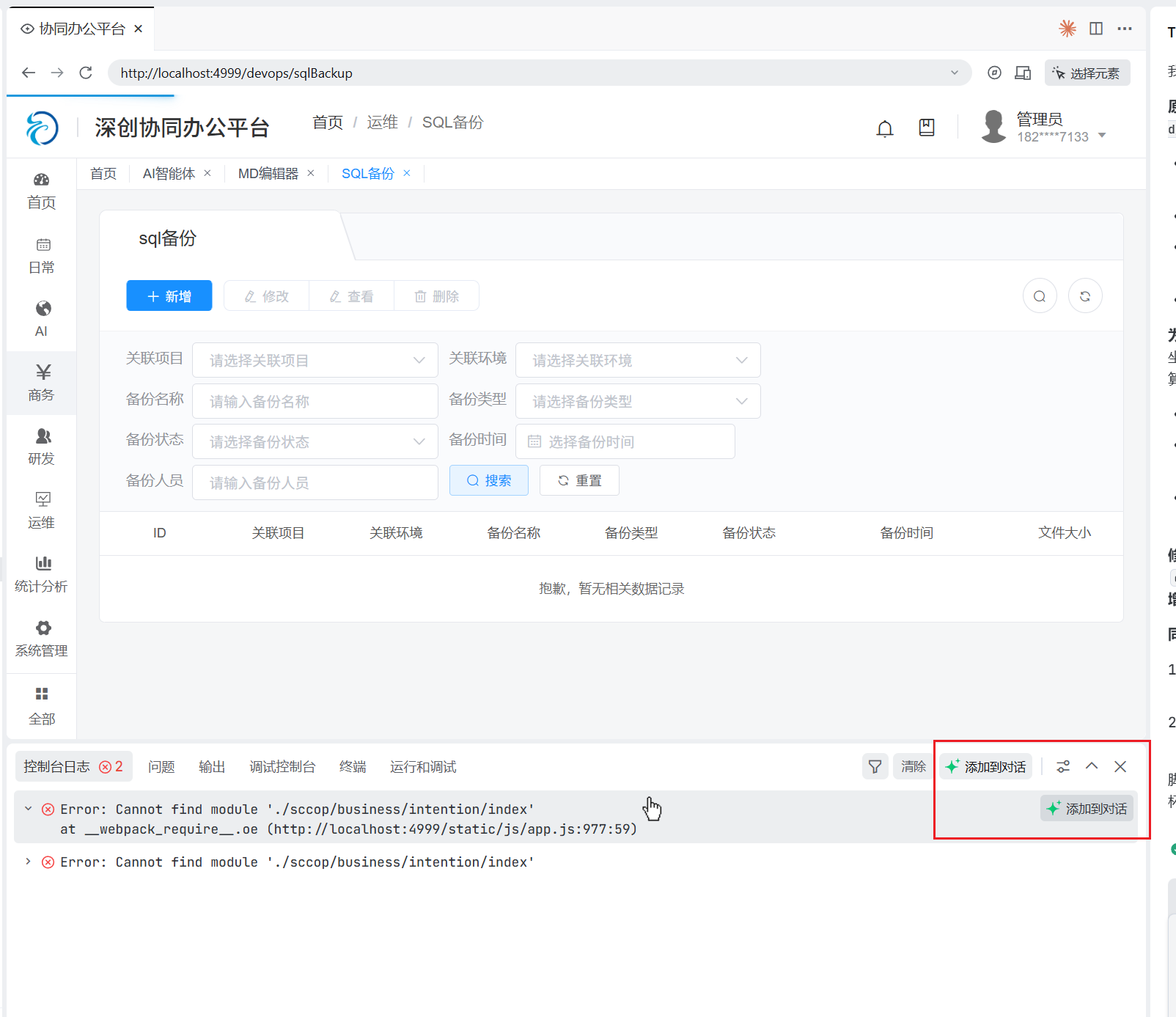 但是,目前 Console 中出现的错误,并不能像 TRAE 一样直接点选加入对话,需要复制粘贴,不够一体化。