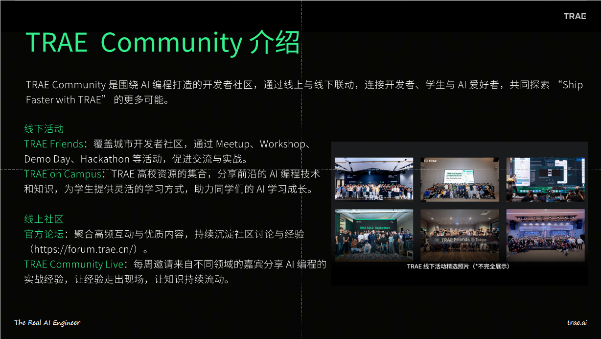 作为对比,先给大家看下参考的 PPT 模板,TRAE Friends 活动的 PPT。
