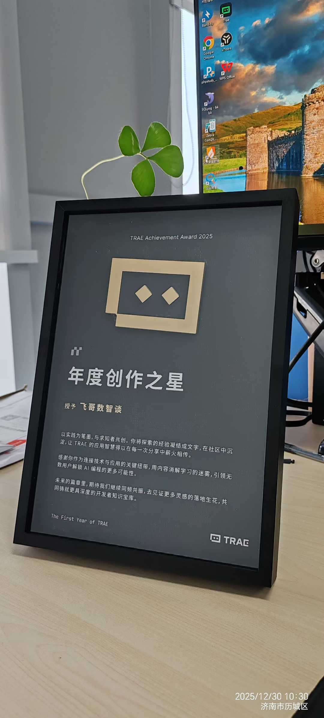 今天有一个好消息和大家分享:TRAE 官方的两个证书收到了——“年度社区突出贡献奖”和“年度创作之星”。